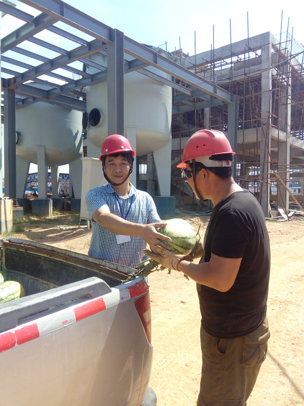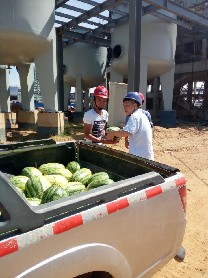 圖為7月18日,公司購(gòu)買(mǎi)一批西瓜送到工地,相關(guān)部門(mén)負(fù)責(zé)人為野外作業(yè)人員送去一片清涼。